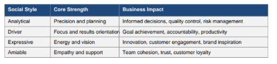 In today’s dynamic workplace, success depends on adaptability, collaboration, and trust. Organizations that understand and apply all four social styles—Analytical, Driver, Expressive, and Amiable—build stronger teams, communicate more effectively, and deliver superior business outcomes. This approach enhances both individual performance and organizational resilience.